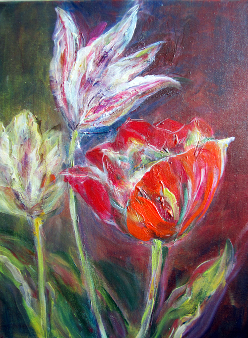Koulutuksen myötä taiteen tekemisen tekniikat laajenivat. Opiskelen kuvataiteilijan ammattiin kolmevuotisessa kuvataidekoulu Alfa-Artissa Helsingissä. Teemme harjoitustyöt pääasiassa akryyli- ja öljyväreillä. Hauskinta taiteen tekemisessä ovat rajattomat mahdollisuudet, sillä nykyään eri tekniikoita voi yhdistellä vapaasti.”