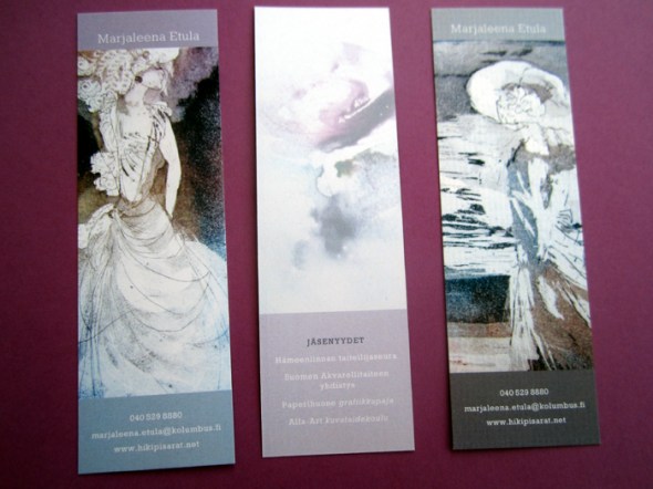Olen tyytyväinen lopputulokseen, sillä kokonaisuus on selkeä. Sain pienimuotoisissa avajaissa kiitosta akvarellien herkkyydestä ja öljyvärien kauniista sävyistä. Yksi grafiikanvedos sai varattu-täpän, joten ainakin bensarahat on ansaittu.