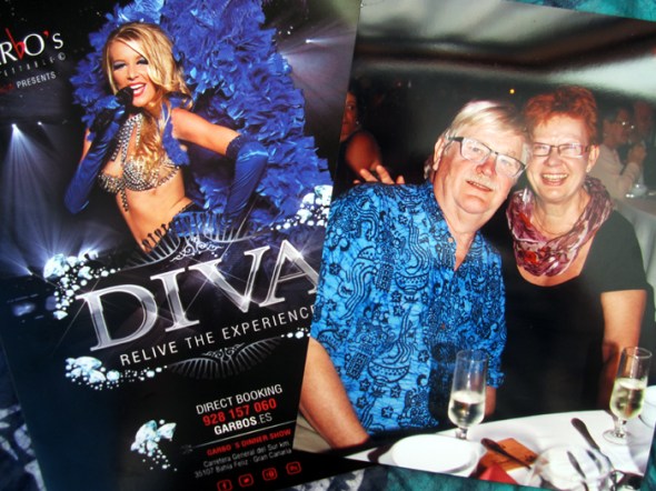 Pulahdimme altaaseen, joka totta totisesti virkisti. Päivätorkkujen jälkeen olikin jo aika kaunistautua iltashow’hun. Garbo’s on täkäläinen menopaikka, jota Finnmatkojen Lasse mainosti tasokkaaksi. Liput olivat kalliit, mutta katettakin oli. Kultakorttilaisilla oli avoin baari ja parhaat paikat lavan edessä.