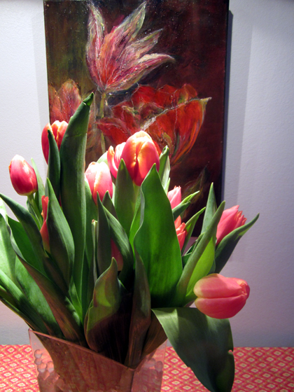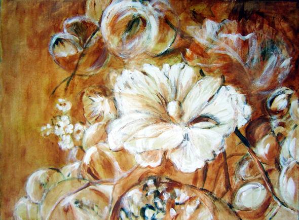 Nämä kukat olen maalannut omalla työhuoneella omaksi ilokseni.