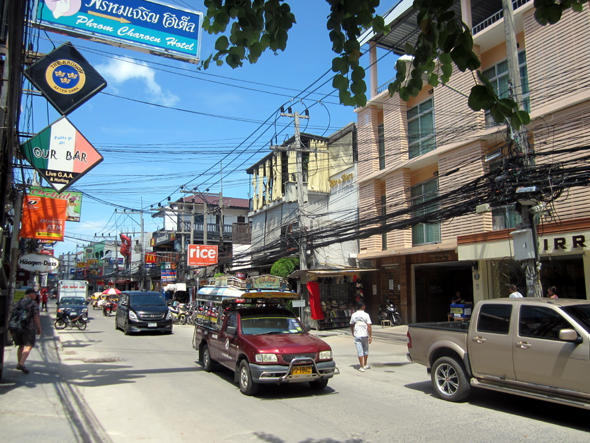 Torstaiaamuna 10.5. hyppäsimme songtaoon ja ajelimme saaren itärannalle Chawengiin. Kylä oli päivällä hiljainen. Se herää vasta iltapäivän tunteina eloon.