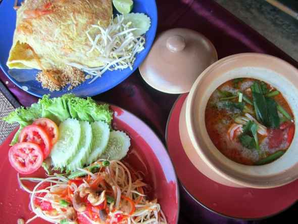 Nyt ei todellakaan ole matkailukausi. Mae Namin ranta oli kovasti hiljainen. Moni rantakuppila oli kiinni. Toki sieltä palveluja löytyi ja muutama turistikin, mutta ruuhkasta ei voinut puhua. Pulahdimme meressä uimassa – meillä on parempi ranta – ja rantakadulla syömässä. Ruoka Thaimaassa on aina hyvää ja tulista. Niin nytkin. Yllätimme itsemme maistamalla rohkeasti paistettuja chilejä (!). Ne olivat vahvan paprikan oloisia, joten hyvin selvisimme. Minä olen herkutellut lähes päivittäin tom yam keitolla, jota parempaa ruokaa en tiedä.