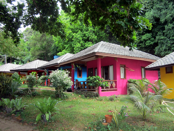 Boom Bayn bungalowkylä oli ennallaan. Omistajapariskunta toivotti käsipäivää. He olivat kunnostaneet puutarhamökit maalaamalla ne kirkkaan värisiksi. Niissä oli nyt ilmastointikin.