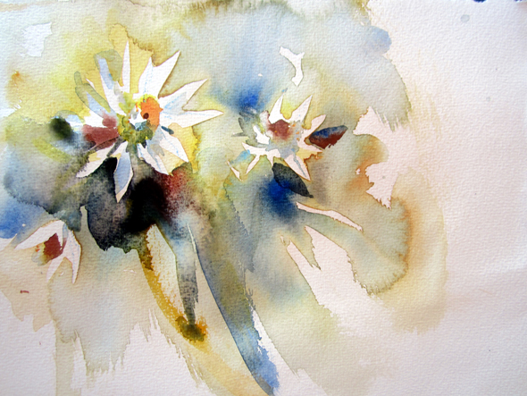 Loppuviikko on sujunut leppoisasti. Minä olen maalannut ahkerasti. AkvArtin kesänäyttelyn teema on värikkäät kukat. Eiköhän näillä eväillä sinne synny tuoreita kukkasia.