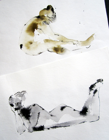 Kaiken kokeilun keskellä peruspiirtäminen on kuitenkin ollut parasta oppia. Olen osallistunut säännöllisesti elävän mallin harjoituksiin. Mittasuhteet ovat olleet usein hakusessa, mutta yrityksen ja erehdyksen kautta huomaan oppineeni ainakin jotain.