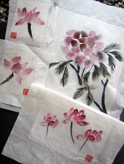 LOTUKSENKUKKIA JA KRYSANTEEMI – kiinalaisia tussimaalauksia