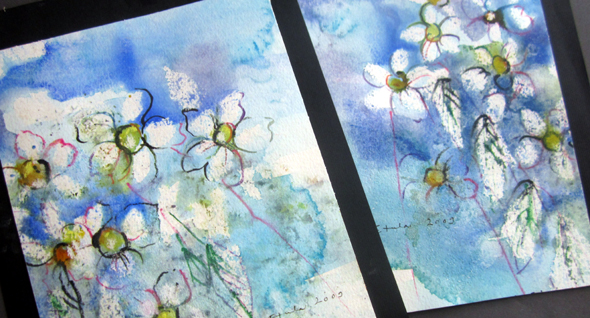 Olen ollut innokas kokeilemaan uusia tekniikoita. Opiskelin hyvällä menestyksellä uusiopaperin tekoa sekä paperin marmorointia.
