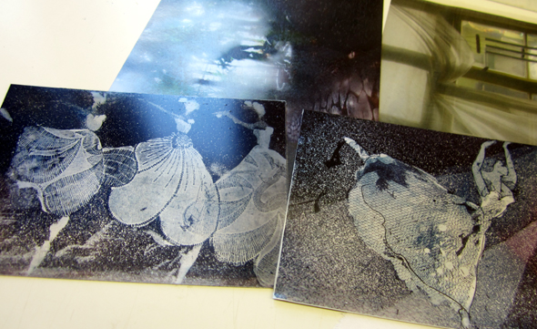 ”Kuvia voi tulostaa periaatteessa mille tahansa materiaalille. Käytämme kurssilla pigmenttitulostinta, koska musteet kestävät hyvin valoa ja aikaa haalistumatta”. Näin opettajamme Anne pohjusti viikonloppukurssiamme. Kaikilla oli omia kuvia mukana muistitikuilla. Aloitimme pohjustamalla kelmua, metallia ja pleksiä. Kaikki huokailivat ihastuksesta, kun valokuvat tulostuivat hopeanhohtoiselle alumiinipellille. Huomenna vuorossa on pleksi ja ohut muovikelmu. Kurssi jatkuu viikon kuluttua, jolloin siirrymme eri paperilaatuihin ja toivottavasti ehdimme kokeilla vielä tekstiiliäkin. Kurssin päätteeksi saamme työt esille Vanajaveden opiston aulatilaan.