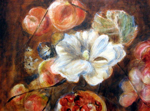 Jatkoin eilen kolmen viikon tauon jälkeen kukkamaalauksen laseerausta. Pääsiäinen ja taiteilijaseuran vuosikokous haittasivat viikoittaista maalaamista. Edistyin niin pitkälle, että illan päätteeksi opettajamme Pekka sanoi, että voit jatkaa seuraavalla kerralla öljyväreillä. Seuraava kerta on työhuoneellani hamassa tulevaisuudessa, sillä huhti-toukokuu on täynnä menoa muuta.
