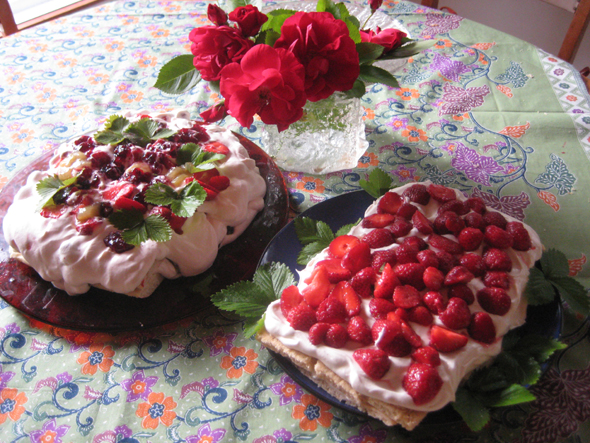 Rakkaimmat ruokamuistot liittyvät kesiin. Olen syntynyt heinäkuussa. Juhlapöydässä on ollut aina kesän ensimmäiset tuoreet mansikat. Jussi voihkii joka vuosi, että heinäkuu on yhtä hulabaloota. Tyttäremme Anna on heinäkuun lapsi, samoin pojanpoikamme Otso. Heinäkuussa on Leenan päivä ja vielä hääpäivämme. Niinpä mansikkakakkuja tulee tehtyä lähes joka viikko. Loppukuusta siirrymme mustikkapiirakoihin.