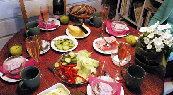 Ystävämme Lii ja Kaizu viettivät kanssamme kylpyläviikonlopun Hämeenlinnassa. Kaiken polskuttelun jälkeen sunnuntaiaamuna maistui kunnon brunssi. Kuohuviinilasit kädessä katsastimme kotigallerian tarjontaa. Vieraamme ovat lähdössä Taiwanille tervehtimään Janne-pojan ja tämän Ya-Wen tyttöystävän vanhempia ja sukulaisia. Tuliaisiksi he halusivat viedä suomalaisia käsitöitä ja taidetta. Minun ruskakuvani kelpasivat. Pakkasin matkaan neljä akvarellia, jotka maalasin viime syksynä Enontekiön maastossa. Mielestäni tämä on kulttuurivientiä parhaimmillaan.