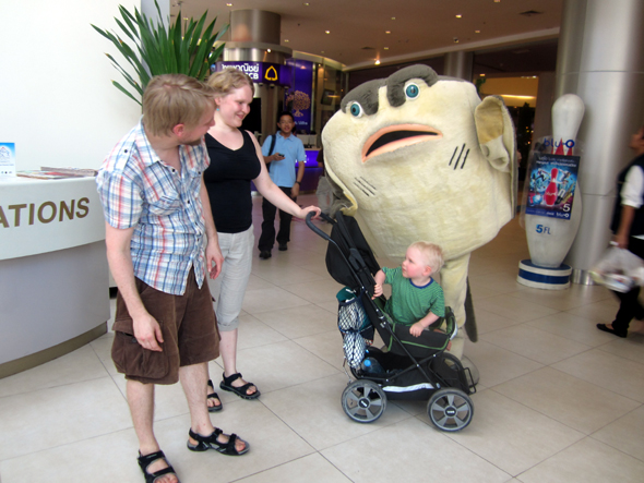 Olimme lähes ainoat turistit paikalla. Se ei tahtia haitannut, sillä keskipäivän kuumuus houkutteli kauppakeskusten viileyteen.