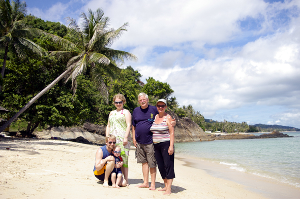 Istuin aamulla auringonnousun aikaan rantahiekalla ja ikuistin lähtöpäivän kunniaksi näkymän, jota katselemme rantabungalowistamme. Olo on haikea, vaikka olemme viettäneet ylellisesti kymmenen päivää täällä Samuin maisemissa. No, saksalaiset eläkeläiset, joita tapaamme joka käynnillämme, viihtyvät täällä puoli vuotta.