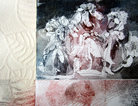 Meillä Paperihuoneen graafikoilla on elokuussa 2013 näyttely Tampereella galleria Emilissä. Teemana on ”Unessa vai valveilla”. Ajattelin, että minulla on koko kuuma kesä aikaa työstää näyttelyvedoksia.