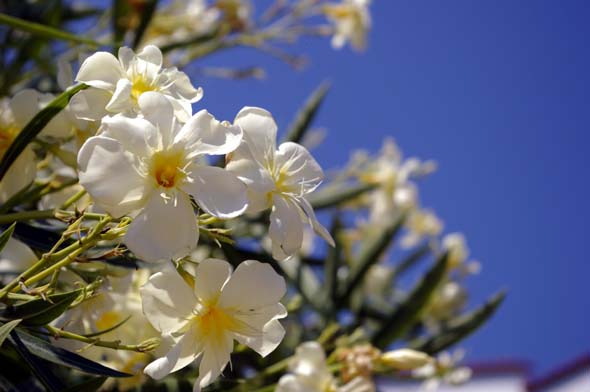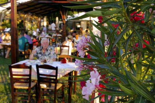 Jotenkin kotikutoinen.  Pahin turistisesonki ei ole vielä alkanut. Ehkäpä siksi palvelu on ollut erityisen ystävällistä ja vieraanvaraista.  Ilmainen jälkiruokatarjoilu on toiminut joka kerran.  Sellaista enää harvoin näkee.  Minun silmiäni ovat hivelleet loistavat kukat.  Valkoiset, vaalean ja tummanpunaiset oleanterit kukkivat tien varsilla.  Pihat ovat hyvin hoidettuja kukkia pursuvine ruukkuineen.  Kuvat puhukoot puolestaan.