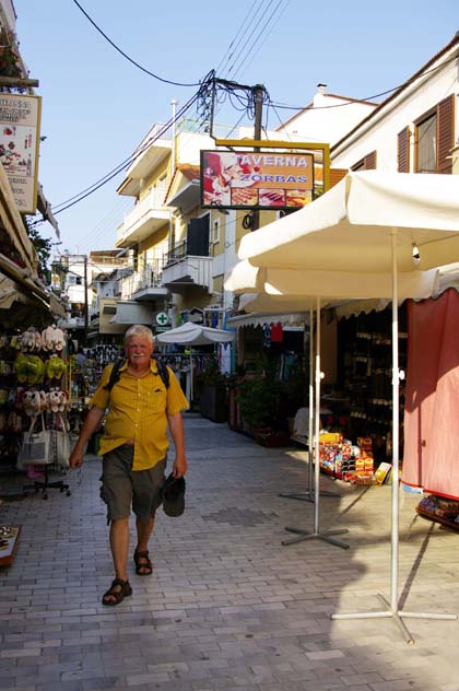 Haimme läheisestä supermarketista ensiavuksi kylmää retsinaa, fetaa, oliiveja, tuoreita tomaatteja ja vaaleaa leipää.  Päiväuniin ei jäänyt aikaa, sillä infotilaisuus alkoi neljältä.  Reipas opastyttö Sanna kertoili värikkäästi, mitä kaikkea saarella voi tehdä.  Päätimme hoitaa nähtävyydet kerralla ja ilmoittauduimme huomiselle saarikierrokselle.