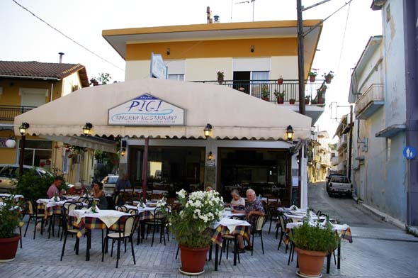 Palasimme täysin voipuneina hotelleille neljän aikoihin iltapäivällä.  Pulahdimme saman tien piha-altaaseen ja päätimme viettää vapaaillan.  Se tarkoitti hyvää meze-illallista rantakadulla ravintola Mesogeioksessa auringonlaskun aikaan.