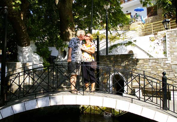Tarinan mukaan suudelma kolmen lähteen aukion sillalla takaa onnellisen parisuhteen.  Pakkohan sitä oli kokeilla.  Pusuttelun jälkeen vierailimme tutustumassa oliiviöljyn puristuksekseen ja maistelimme paikallista hunajasatoa.