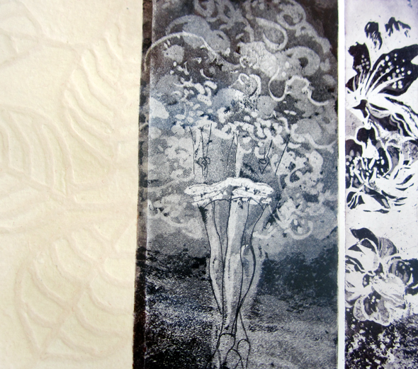 Elokuun grafiikkanäyttely sai minuun potkua, vaikka ilmanala oli turhan kuuma sisätyöskentelyyn. Paperihuone sijaitsee vanhassa puutalossa, jossa toden totta lämmintä riittää vaikka pitää ikkunat ja ovet auki. Sain päivän mittaan tehtyä neljä suurikokoista vedosta. Niistä kaksi onnistui, kaksi ei. Nyt pitää olla vain tyytyväinen, että edes kaksi onnistui.