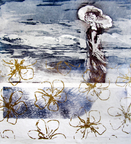 - TYTTÖ RANNALLA – etsaus ja akvatinta, chine collé