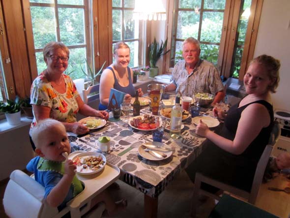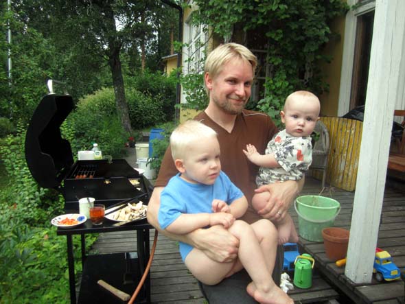 Poikkesimme heinäkuun alussa Otsolassa. Laura hehkutti puhelimessa, että tiedossa on grilli-ilta. Annamuru ja Samukin lupautuivat mukaan. Grillimestari Miika kaappasi molemmat pojat syliin tuoksuvaan kesäiltaan.
