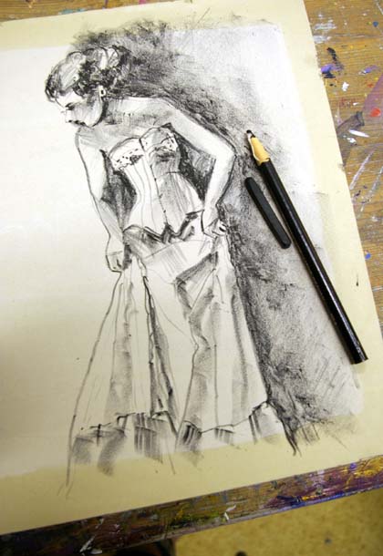 Hiotut kivet kuivataan heiluttamalla läpyskää tai pahvinpalaa, joilla saadaan kunnon ilmavirta aikaiseksi. Kivi pohjustetaan sivelemällä siihen alunaa ja kuivatetaan uudelleen. Reunat suojataan arabikumilla. Kaiken tämän jälkeen alkaa hauskin vaihe eli työn piirtäminen. Siihen käytetään rasvaliituja ja tussia.
