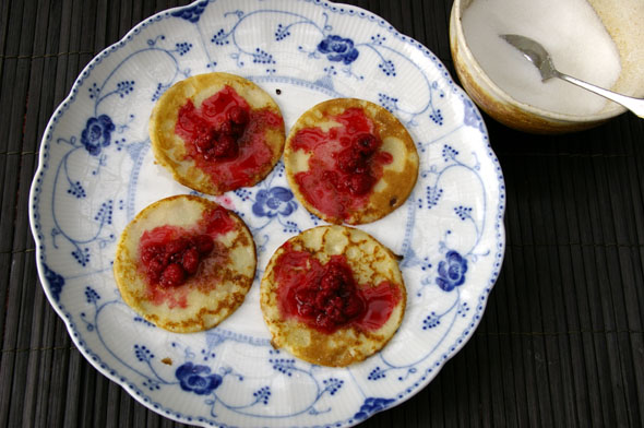 Tyttäreni Anna on herkkusuu. Kun kysyin, maistuvatko letut jälkiruuaksi, hän varmisti, että myös hilloa ja jäätelöä löytyy. Löytyihän niitä. Nyt on erinomainen vadelmavuosi. Olen keitellyt jo pari kertaa makoisaa hilloa. Tällä kerralla letut paistuivat äidin vanhassa pannussa, joka on palvellut mökillä vuosikymmeniä.
