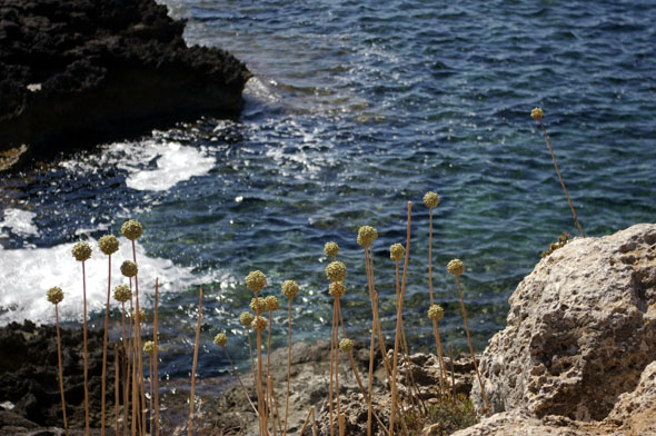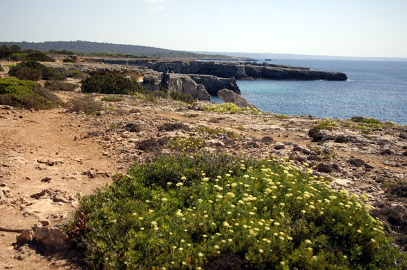 Ensimmäinen patikkareittimme suuntautui saaren länsirannalle, toinen pohjoiseen Ciutadellan kaupunkiin ja kolmas pitkin etelärannikkoa. Lämpötila täällä on tasaisesti 30 asteen tietämissä, mutta raikas merituuli hivelee mukavasti kulkijaa. Paitsi eilen, kun taivas oli sinistäkin sinisempi ja meri kimmelsi tyynenä. Hiki pisaroi ja juomavesivarasto hupeni rivakasti.