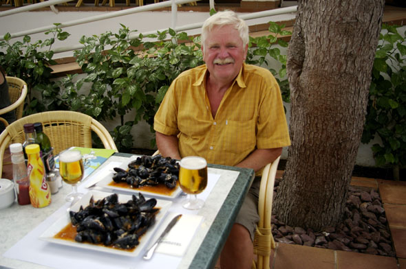 Söimme lounasta suoraan sataman yläpuolella olevassa pikkutavernassa Gas Consolissa. Sinisimpukat ja mustekala katalonian tapaan olivat suussa sulavan herkullisia kylmän valkoviinin kera. Minä hyrisin tyytyväisyydestä.