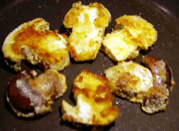 Tein herkuista pannulle sopivia pihvejä, jotka kastoin ensin kananmunaan ja sitten korppujauhoihin. Mausteiksi riittivät suola ja pippuri. Maku on uskomattoman pehmeä ja kerrassaan herkullinen. Eipä turhaan sienten nimi ole herkkutatti.