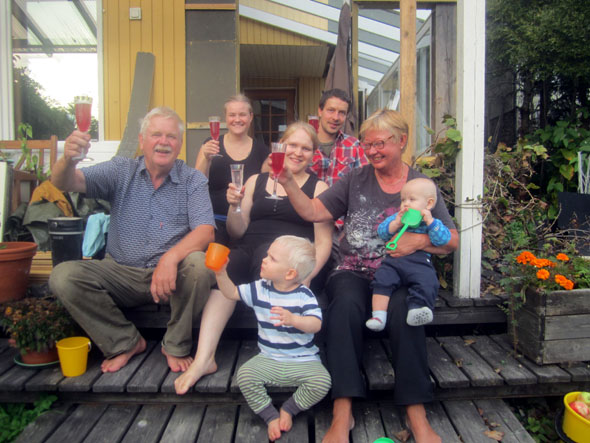 Viikonloppu oli yhtä juhlaa. Vietimme Kauklahdessa Samun ja Otson Jussi-papan syntymäpäiviä grilliruokien ja omenapiirakan parissa. Otso osaa jo sujuvasti sanoa ”kakkua” ja hetken kuluttua ”lisää”.