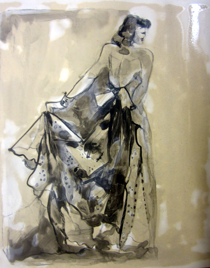 Pääsin jatkamaan piirustelua litografiakiven parissa. Viimeistelin tussilaveerauksen vahakynällä ja mattoveitsellä. Sen jälkeen pääsin tositoimiin. Tällä kerralla ammattitaitoinen graafikko Kukka opasti meitä aloittelijoita. Ehdimme illan aikana syövyttää piirroksen arabikumilla ja typpihapolla. Lukuisien pesujen ja kuvauksien jälkeen kuva puhdistettiin lamppuöljyllä ja siveltiin lopuksi asfaltilla. Ensi kerralla vuorossa on se jännittävä vaihe, kun näkee, mitä tuli tehtyä. Palaan asiaan viikon kuluttua.