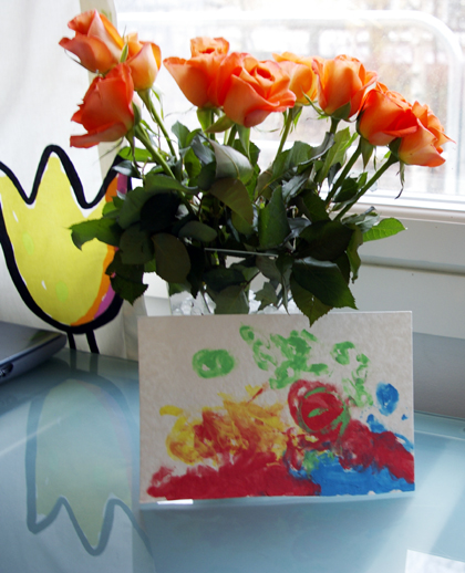 Onnea kaikille isille tänä sateenharmaana marraskuisena päivänä. Kyllä me äidit olemme onnekkaita, kun saamme juhlia keväällä. Posti toi Jussille ison kirjekuoren, josta löytyi Otson piirros. ”Iloista isänpäivää Papalle! toivottavat Otso, masu-Hipsu, Miika & Laura. Minä en saanut korttia aikaiseksi, mutta tarjoilin sen sijaan päivänsankarille aamupalaksi herkkuja: lettuja lakkahillon ja ruusukimpun kera.