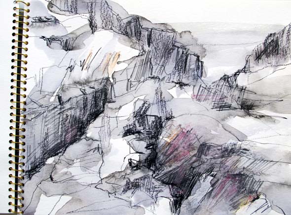 Pakkasin toivorikkaasti viikon lomamatkalle akvarellikynät ja tussit sekä akvarellilehtiön. Meillä oli kuitenkin niin vauhdikas ohjelma, että piirustelu jäi vähiin. Valokuvia sitä vastoin kertyi runsaasti. Nyt kun matka on tuoreessa muistissa, voin jatkaa taiteilua – elleivät joulukiireet yllätä.