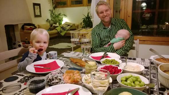 Nykyajan tekniikka on ihmeellistä. Puhelimeen napsahti kuva Miikan ja Lauran perheen joulupöydästä. Kyllä nuoretkin osaavat arvostaa perinneherkkuja. Annan perhe on luvannut tulla mökkivierailulle vielä ennen uutta vuotta.