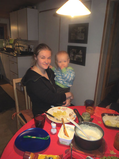 Saimme Annan ja Samupojan iloksemme juuri ennen uutta vuotta. Minä lämmitin tyttöselle omatekoisia joululaatikoita ja tein hänen herkkuaan sienisalaattia. Samun ruokavalio oli hyvin pelkistetty, sillä hän poti yllättäen oksennustautia. Toivomme kovasti etteivät pöpöt tartu meihin ja huomisiin juhlavieraisiin.
