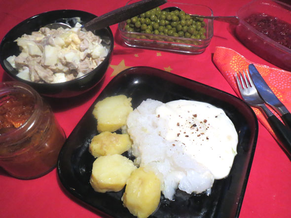Jussi pitää lipeäkalasta. Minä en erityisemmin eikä myöskään tyttäremme Anna. Mutta niin vain söimme urhoollisesti kalalautasemme tyhjiksi perunoiden ja runsaan valkokastikkeen kera. Nyt on tämäkin perinneruoka hoidettu tämän vuoden osalta. Paistoin kalan uunissa 175 asteessa. Pussin kyljestä löytyy perusteellinen ohje.