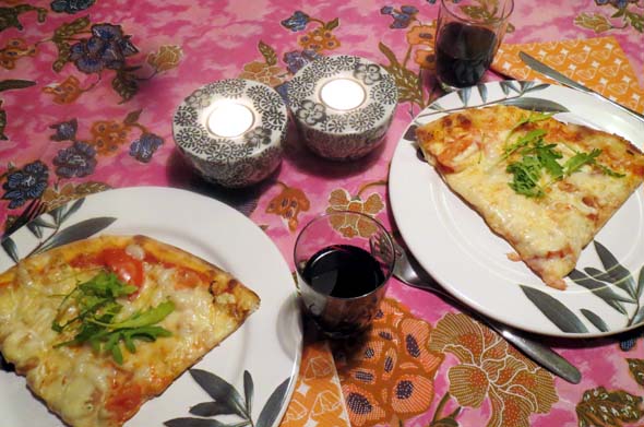 Olen hehkuttanut heti laskiaisen jälkeen kevytruokaviikkoa. Jussi sanoo juu, mutta mitään ei tapahdu. Purimme eilen mökkileirin ja siirryimme kaupunkiasunnolle. Se tarkoittaa että Jussi käy täältä käsin mökillä hommissa. ”Tänään aloitamme”, minä ehdotin. ”Jos kuitenkin hakisin ensin pizzan, niin jaksamme”, Jussi tarjoutui. Meillä on kävelyetäisyydellä parikin kelpo pizzeriaa. Niinpä sitten yhteistuumin herkuttelimme ennen laihoja viikkoja. Hyvältä maistui.