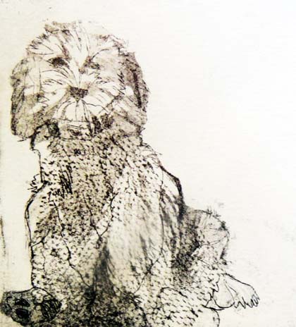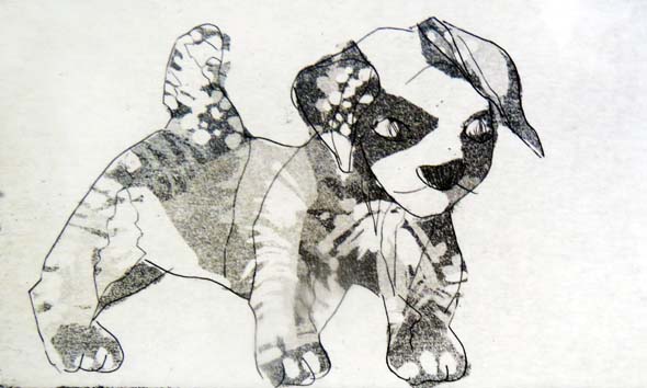 Ehdin tehdä myös pienen eläinsarjan, kissoja ja koiria sekä yksisarvisen. Meillä paperihuoneen graafikoilla on suunnitteilla yhteisnäyttely otsikolla satukuvia. Siihen eläinaiheet sopivat mainiosti.