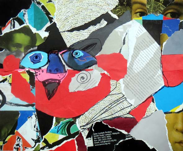 Kolmas työ syntyi ihan vaan siksi, että Jussi katseli televisiosta Sotshin urheilua. Se ei minua kiinnostanut, hyvä niin, sillä kollaasi kiinnosti.