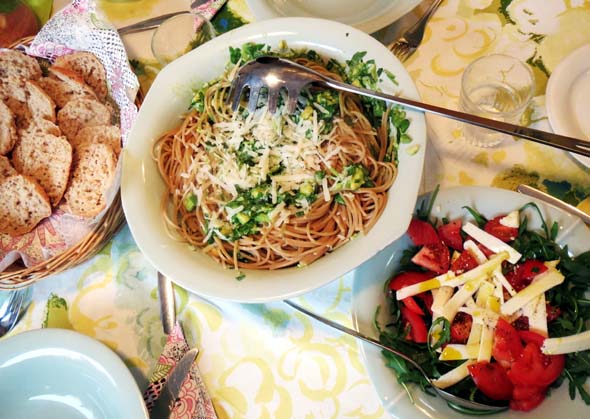 Seuraavana aamuna omatekoisten sämpylöiden tuoksu valtasi keittiön.  Päiväkävelyn jälkeen saimme maistaa trendikästä avocadopastaa.   Jälkiruokana tarjottu karpalojäädyke kruunasi hienon aterian.  Lupasimme tulla pian uudestaan.