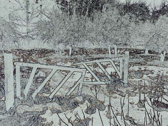 Järvenpään retkellämme otin muutamia lähes mustavalkoisia valokuvia harmaasta maisemasta. Kokeilin tuoreilla taidoillani photoshopata porttikuvan hiilipiirroksen näköiseksi. Sehän onnistui kokeilemalla. Hauskaa tämä tietokoneleikki.