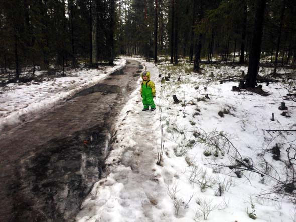 Otson kanssa kävimme metsäretkellä. Häntä ei liukkaankostea keli haitannut. Minä odottelen jo kovasti kevätaurinkoa.
