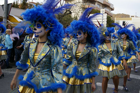 Hola. Kevät on tullut. Koristeomenapuut ja magnoliat kukkivat vaaleanpunaisina. Raikas merituuli puhaltelee ja grillatut sardiinit tuoksuvat. Me olemme kotiutuneet mainiosti Espanjan itärannikolle. Barcelonasta tänne Lloret de Mariin on matkaa 85 kilometriä. Rantapaikka on eloisa jo näin varhain keväällä. Kahvilat tarjoavat vahvaa cortadoa ja hotellimme liikaa tukevaa ruokaa. Puolihoito on vaarallista. Vastapainoksi olemme retkeilleet lähiympäristössä. Kiinnostavin oli päivä Tossa de Marin karnevaaleilla.