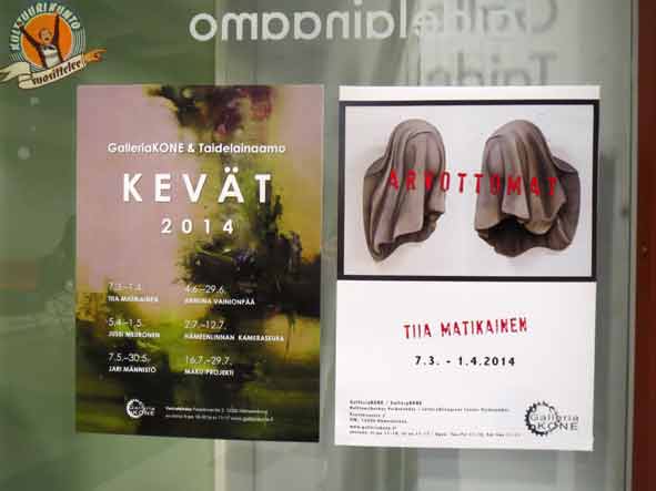 Kevään kirjoituskurssi lähestyy loppua. Tällä kerralla vuorossa oli Tiia Matikaisen keramiikkaa. Ensimmäinen aihe oli miettiä näyttelyn teemaa ”kuka tai mikä on arvoton”. Gallerian lattialle oli koottu ryhmä betoniveistoksia otsikolla Spuget (maanmatoset). Saimme valita yhden, jolle keksimme tarinan. Kyseessä oli laitapuolen kulkijat. Minusta ne muistuttivat partioleiriläisiä, jotka nukkuivat nuotion äärellä makuupusseissa. Niinpä kirjoitin Kainon tarinan.