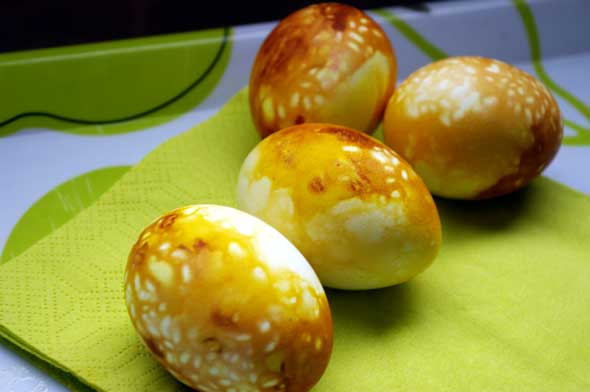 Kiitos Niksi-Pirkka. Luin marmoroidujen munien ohjeen ja päätin oitis kokeilla. Idea oli, että kananmunat kääritään tiiviiseen alumiinifolioon. Väliin sujautetaan riisinjyviä ja sipulinkuoria. Keitin munat normaalisti noin seitsemän minuuttia.