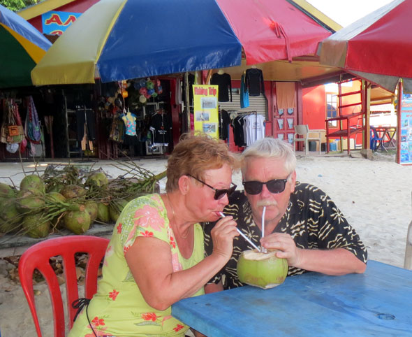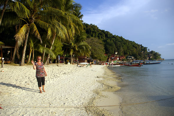 Päivä kului verkkaan rannalla elämänmenoa katsellen. Kävimme toki myös uimassa kirkkaassa ja suloisen lämpimässä merivedessä. Rannalla on muutama ravintola ja kuusi pientä mökkikylää. Kymmenen minuutin kävelymatkan päässä on saaren vastaranta Long Beach, joka opaskirjan mukaan on nuorison suosiossa. Tämä rauhallinen poukama sopii hyvin meille. Seuraavat kaksi viikkoa näyttävät oikein lupaavilta.