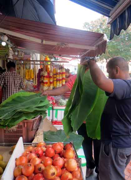 Niin nytkin. Löysimme hotellin läheltä paikan, joka oli täpötäynnä paikallisia. Jussi tilasi lammasta, minä kasvisannoksen. Saimme eteemme tarjottimet, joissa banaaninlehden päällä oli keko riisiä sekä kymmenkunta pikkukippoa erilaisia kastikkeita. En tiedä mitä söin, mutta hyvää oli. Me käytimme haarukkaa ja lusikkaa. Paikalliset söivät tottuneesti sormin. Tänään en saanut yömyssyä, sillä kaupoissa alkoholinmyynti loppui kahdeksalta.