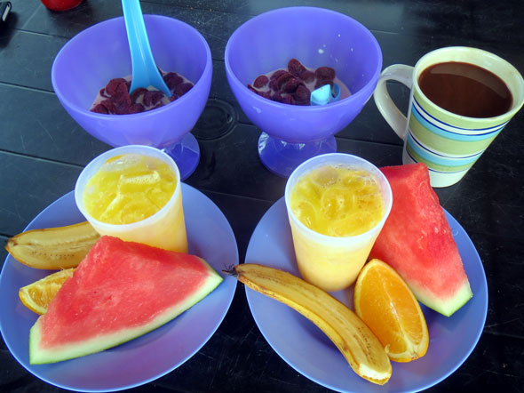 Eniten nautimme siitä, ettei ole kiire minnekään. Nettiyhteydetkin toimivat enemmän tai vähemmän hyvin. Ravintola Ewan’sisista on tullut kantapaikkamme hyvien wi-fi yhteyksien ja erinomaisten mangoshakejen ansiosta. Salasana verkkoon vaihtuu päivittäin – jälkiruokalistalta. Viimeisin oli chocolatepancake.