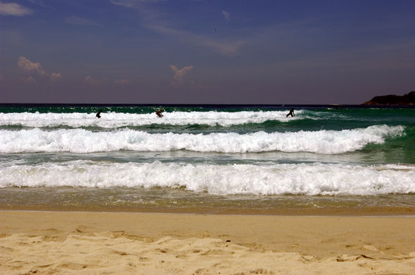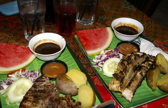 Täällä ei tapahdu mitään. Se tuntuu yllättävän hyvältä. Päivän kohokohta on päättää, minne mennä syömään. Olemme päätyneet aamiaisella hyvään kompromissiin. Yksi annos paistettuja roteja ja currykastiketta ja yksi annos paahtoleipiä munakkaan kera, kas siinäpä hyvä yhdistelmä malesialaista ja länsimaista ravintoa. Sen lisäksi nautimme tuoreista hedelmistä ja erinomaisista shakeista. Nuudelikeitot, paistettu riisi sekä barbeque-illalliset takaavat, että pysymme riskissä kunnossa.